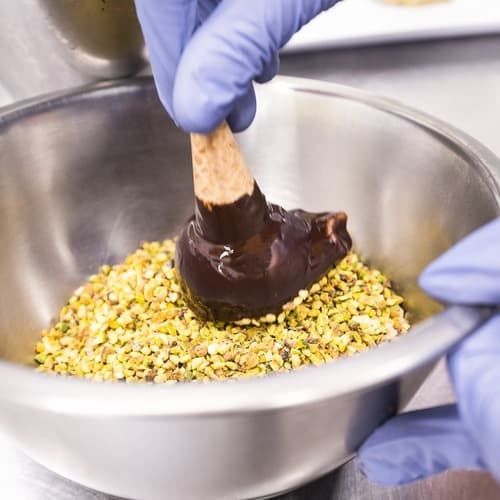 Continuando questa escalation di dolcezze, annoveriamo tra le nostre specialità: dessert alla rinomata mandorla di Avola, i nostri Torroncini creati rigorosamente con sola meringa all’italiana aggiungendo prezioso miele dell’Etna e zuccheri, infine arricchiti dai sapori decisi dei pistacchi di Bronte (”oro verde”) anch’essi particolarmente ricercati o delle già citate mandorle, glassati in ultimo con puro cioccolato nero o bianco.