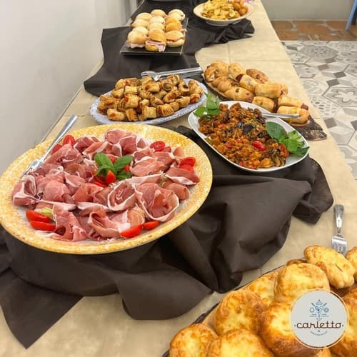 “Da Carletto”, è specializzata nella preparazione di gastronomia d'eccellenza tra cui taglieri di formaggi e salumi, contorni, primi e secondi di pesce e di carne, tortellini, insalatone, piatti freddi, panini imbottiti, tramezzini, e naturalmente rosticceria siciliana, come le prestigiose impanate siciliane (Con broccoli, spinaci, cavolfiori, tuma, tonno, ecc.), sfoglie, pizze a tranci e le intramontabili arancine siciliane.
